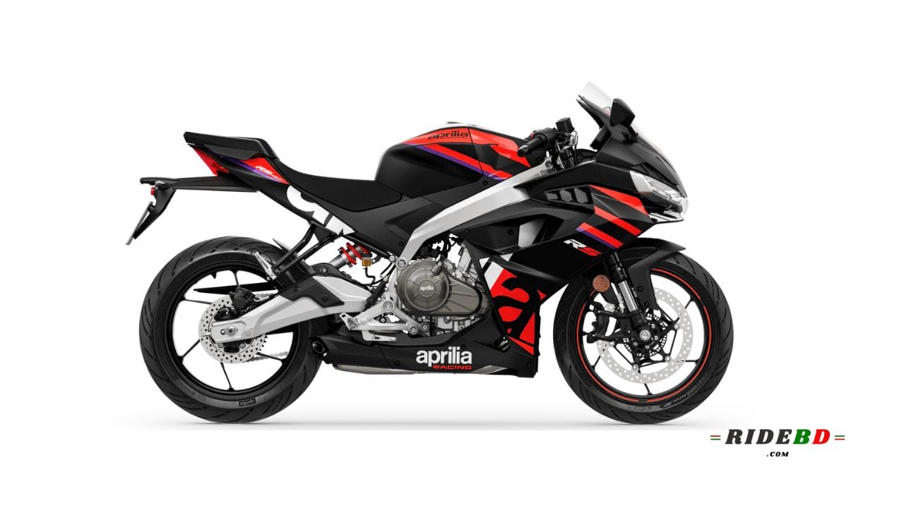 Although the Aprilia RS 457 is not yet available in the Bangladeshi market, its expected starting price is approximately 850,000 BDT*. Powered by a 457 cc, 2 parallel forward facing cylinders, 4 valves per cylinder, liquid-cooled with Ride-By-Wire, FI engine, the bike delivers a maximum power of 46.93 Bhp (47.58 PS) @ 9,400 rpm and peak torque of 43.5 Nm @ 6700 rpm.