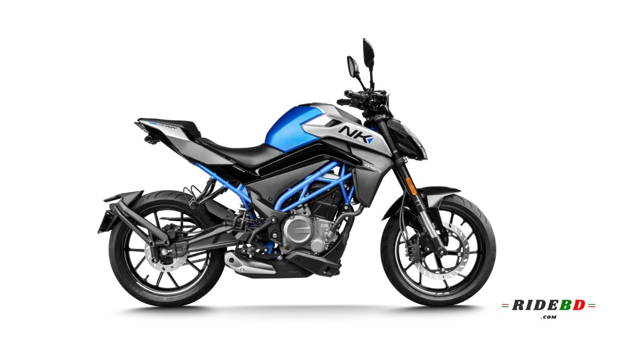 CFMoto 250NK price in Bangladesh is 348,500BDT . The bike has a 249cc DOHC, single-cylinder, liquid-cooled engine that can produce a power of 27.5Bhp (20.5kW) @ 9200 rpm and 22N.m of torque @ 7300 rpm. With a six-speed gearbox, the CFMoto 250NK can get a top speed of 135 kmph (expected).