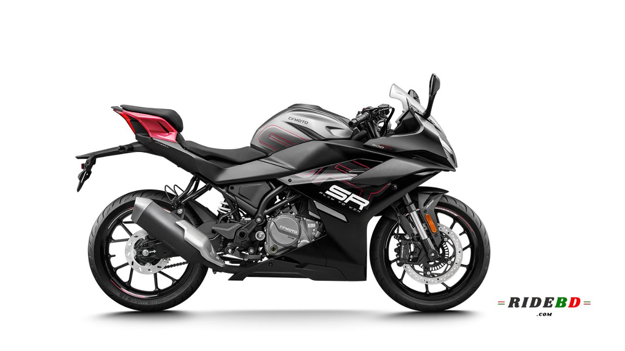 CFMoto 300SR price in Bangladesh is 458,500BDT. This bike features a 298cc DOHC, single-cylinder, liquid-cooled, Fuel injected Engine delivering a maximum power of 29.5 BHP (22kW) @ 9500 Rpm and peak torque of 27 Nm of torque @ 6500 Rpm.