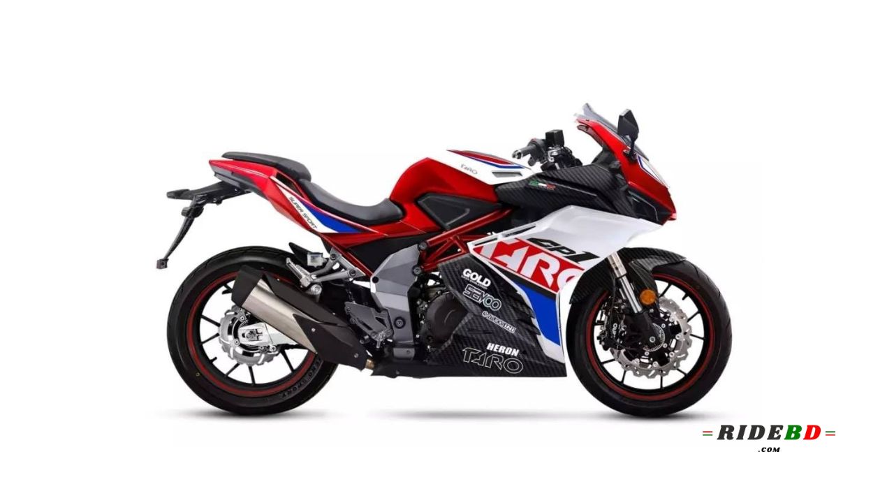 The Taro GP1 V4 price in Bangladesh is 375,000 BDT. This bike features a 160 cc, Liquid-cooled, single-cylinder, 4-stroke, 4-valve, DOHC, EFI engine delivering a maximum power of 19.8 bhp (20.07 PS) and peak torque of 18.0 Nm.