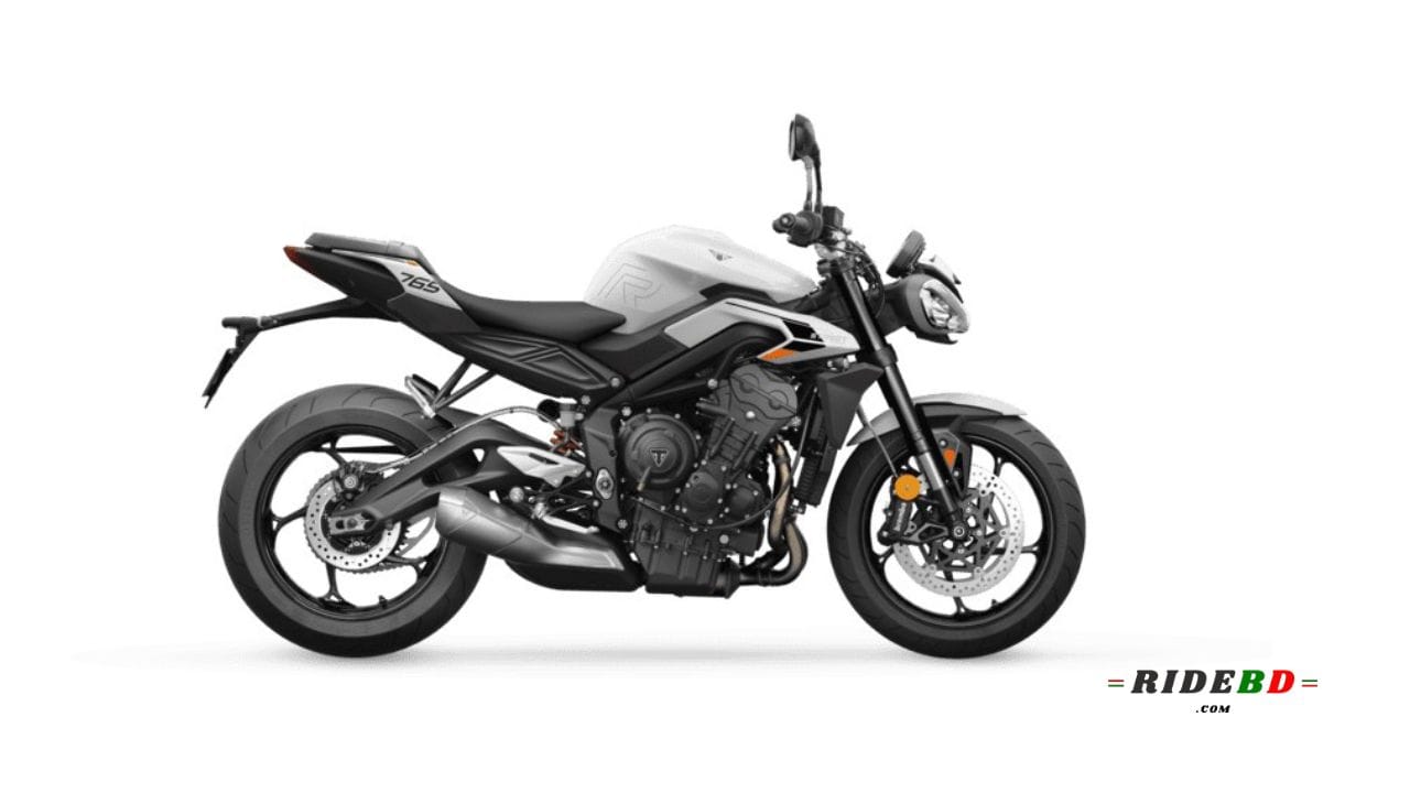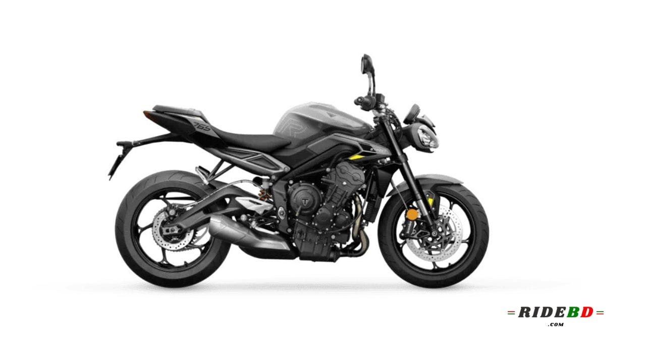 Although the Triumph Street Triple 765 R is not yet available in the Bangladeshi market, its expected starting price is approximately 1,400,000 BDT*. Powered by a 765 cc, Liquid-cooled, 12 valve, DOHC, inline 3-cylinder, FI engine, the bike delivers a maximum power of 118.4 HP (88.3 kW) @ 11,500 rpm and peak torque of 80 Nm @ 9,500 rpm